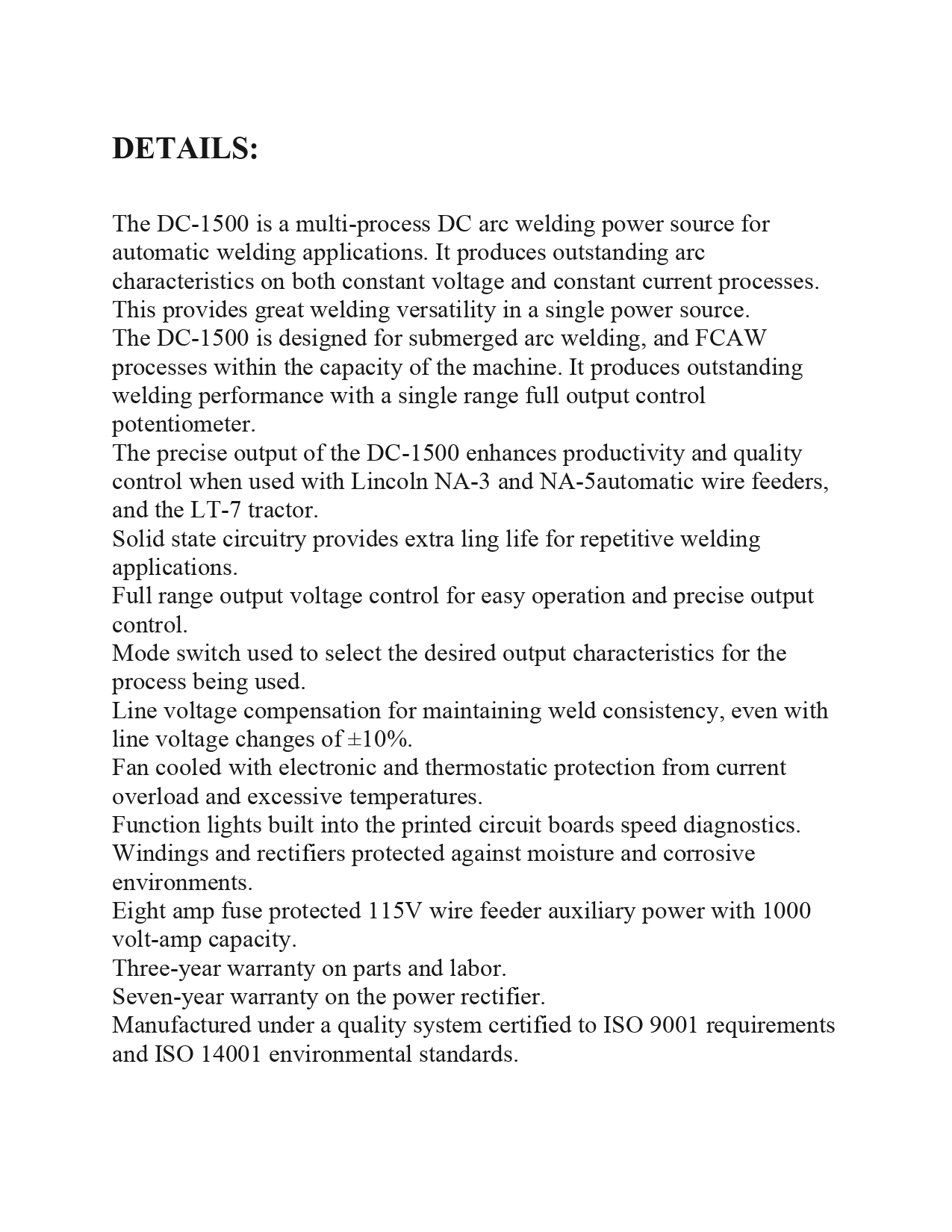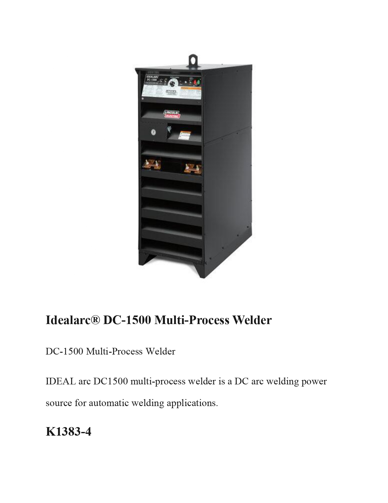 IDEAL arc DC1500 multi-process welder is a DC arc welding power source for automatic welding applications.
